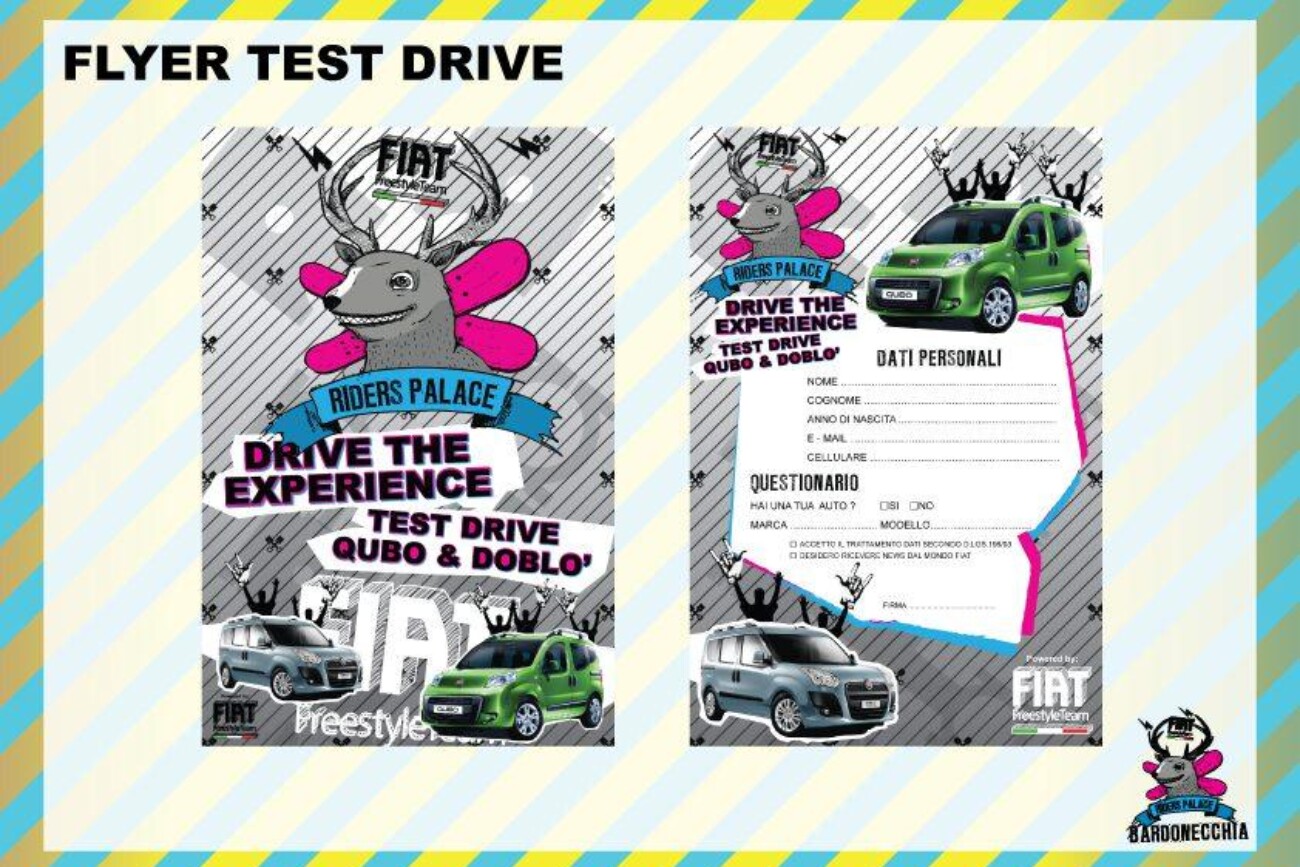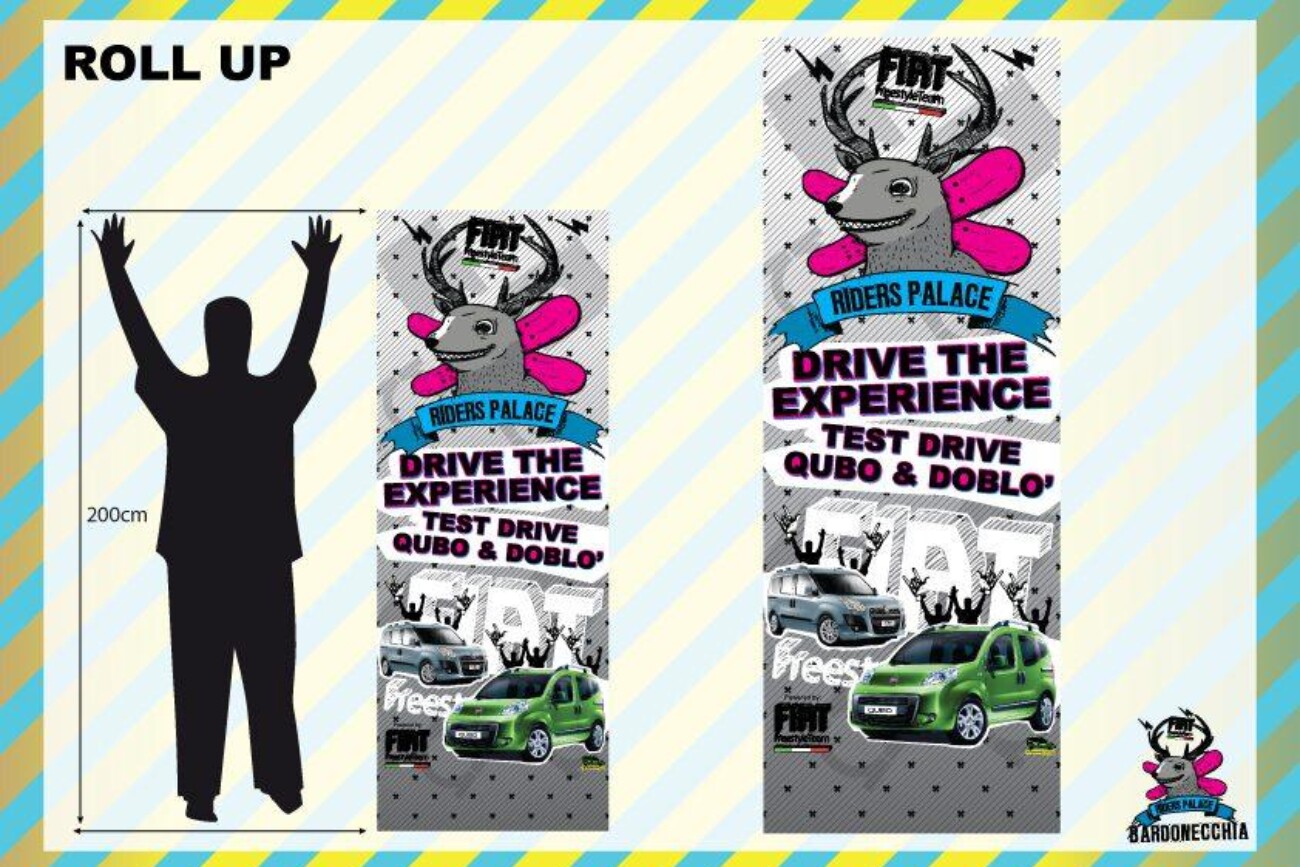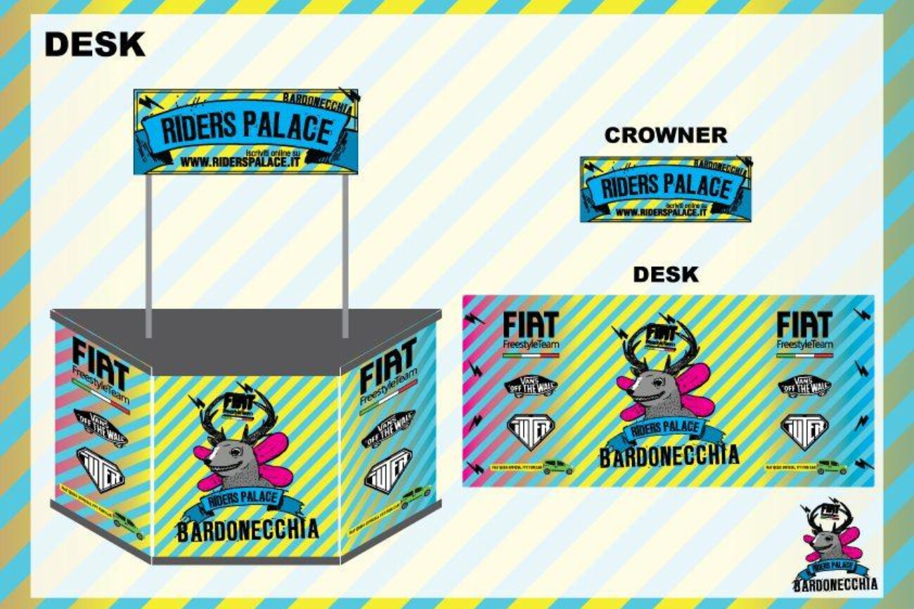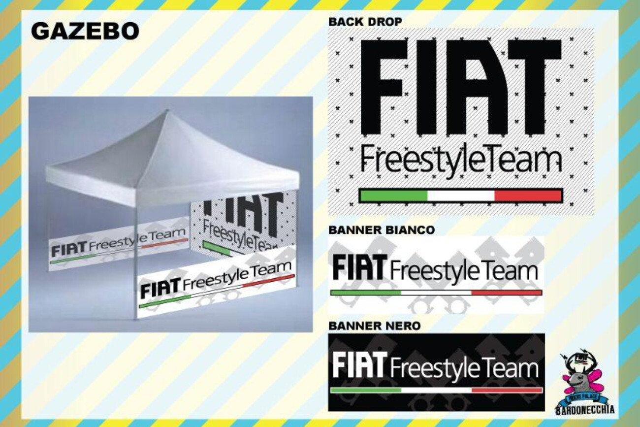 Info Progetto: Data: 29-01-2011 Cliente: CentoEventi s.r.l. Brand: Fiat Freestile Team – Iuter – Vans – Asahi – Riders Palace Skills: Brand & Event Manager Reality Sub-Skills: Ideazione, Studio e Progettazione, Realizzazione, Gestione ed Ottimizzazione Budget, Logistica e Installazione. Tools: SketchUp, Illustrator, Excel for Business Plan, Etc. Tempi di Realiz.: 90 giorni lavorativi