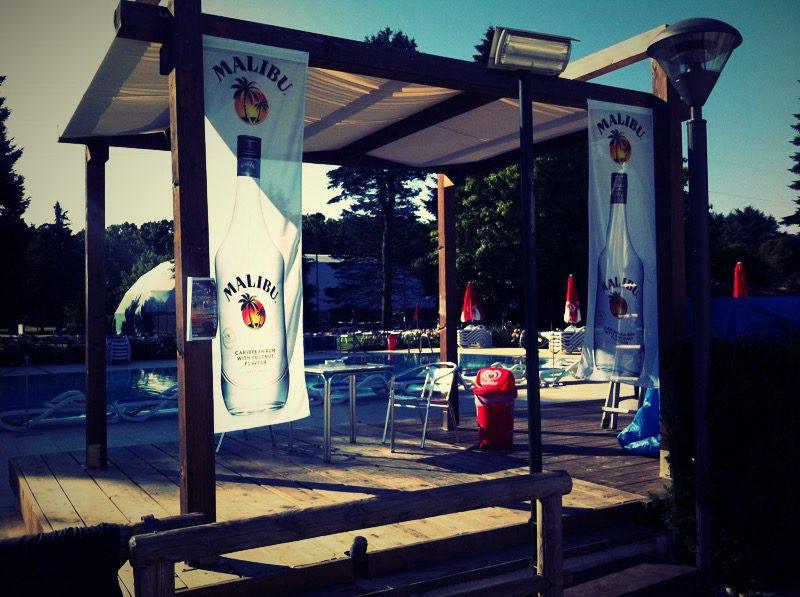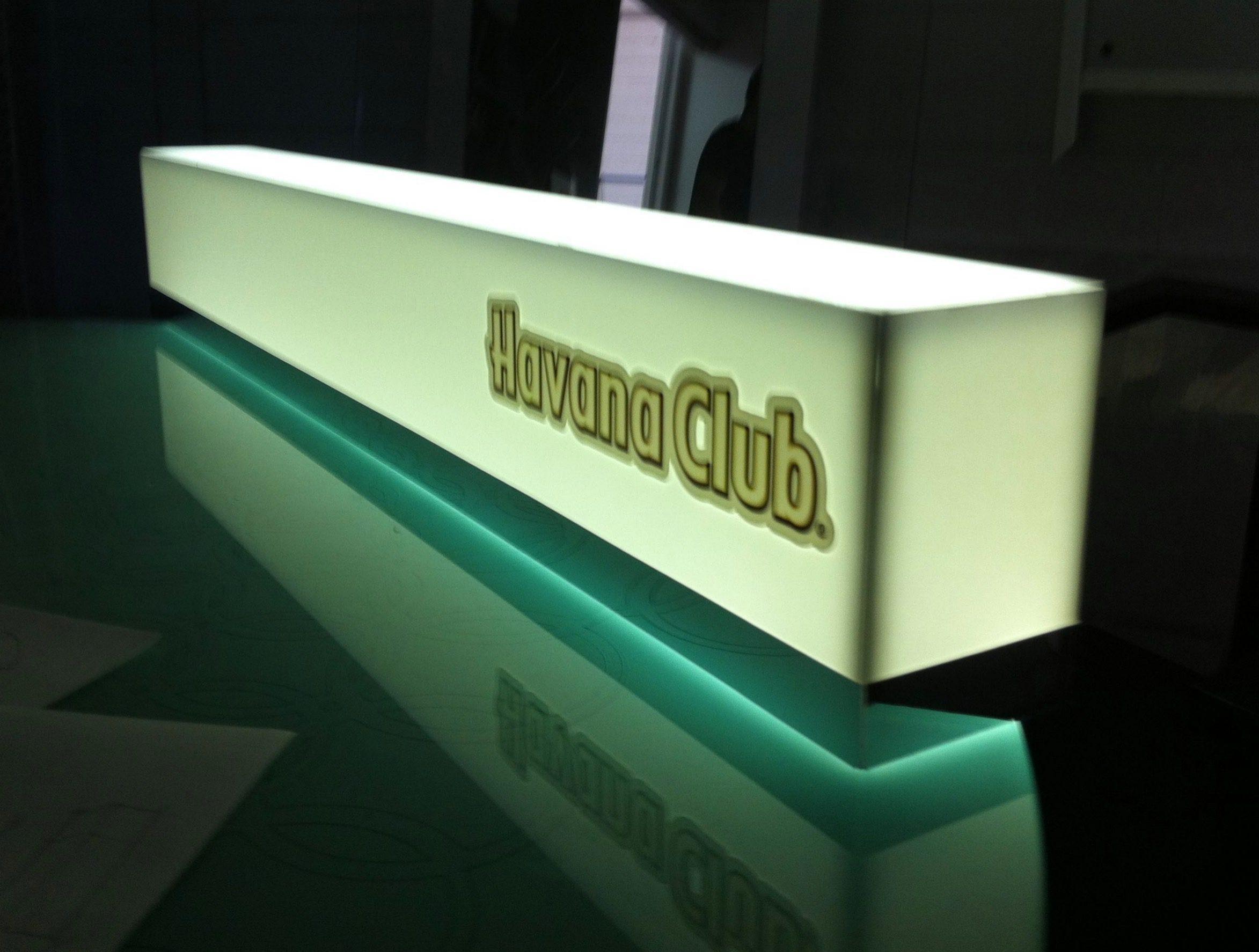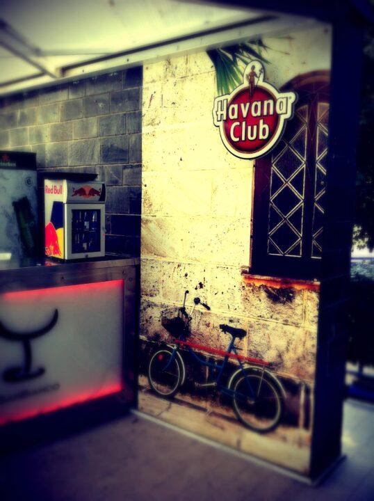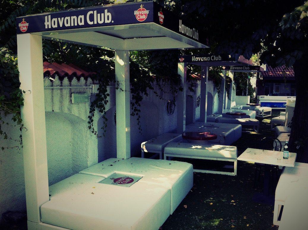 - Bar esterno Havana Club @ Bar Bianco: bottigliera luminosa, colonne.