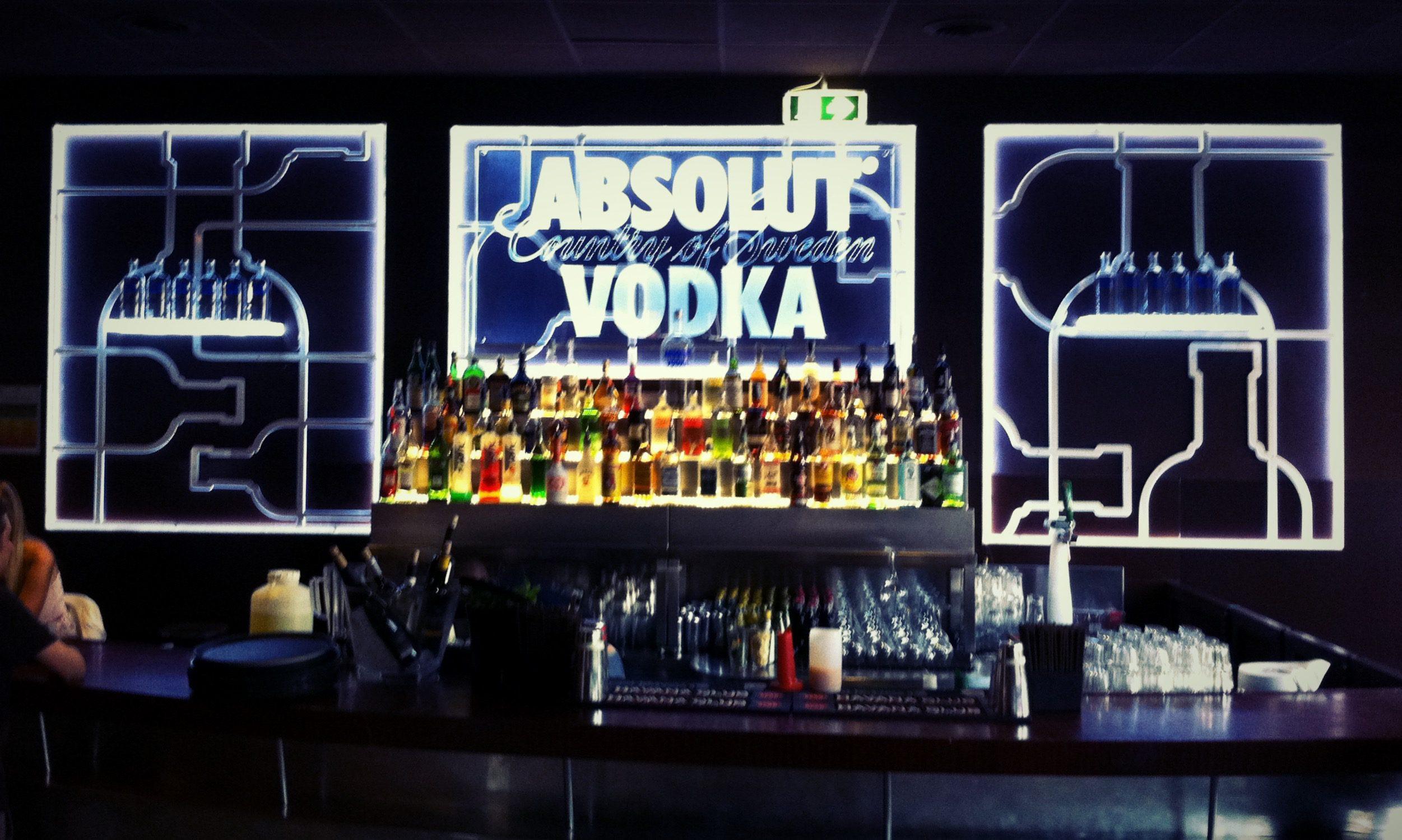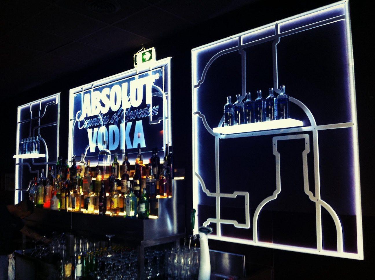 - Bar esterno Absolut Elyx @ B-Fly Loano: banco Slide, insegna luminosa.