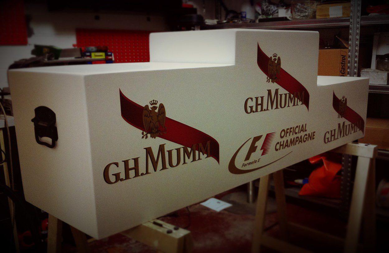 - Podio luminoso G.H. Mumm @ Just Cavalli: plexiglass tagliato al laser.