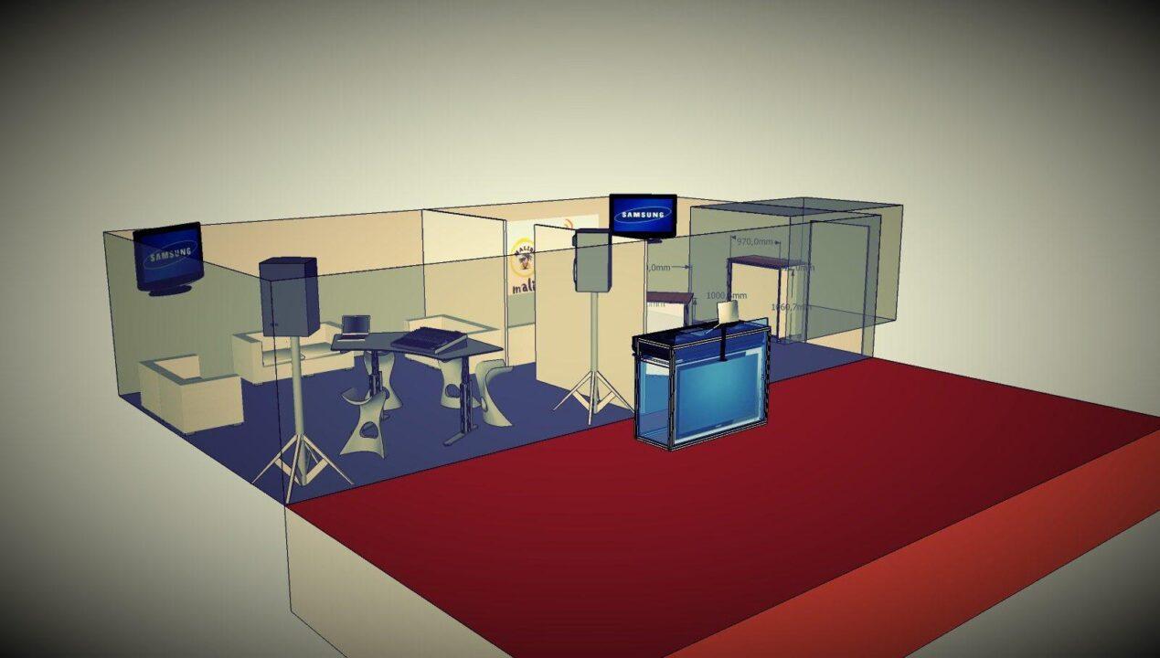 Una volta procurato tutto il materiale, abbiamo potuto procedere con la realizzazione, creando una vera è propria Regia di Registrazione in uno spazio veramente ridotto. La peculiarità di questo stand, infatti, è proprio quella di poter permettere di “andare in diretta”, da qualsiasi luogo toccato dal tour, modificando semplicemente la configurazione dello stand in base allo spazio concessoci, senza doverlo necessariamente stravolgere tutto.