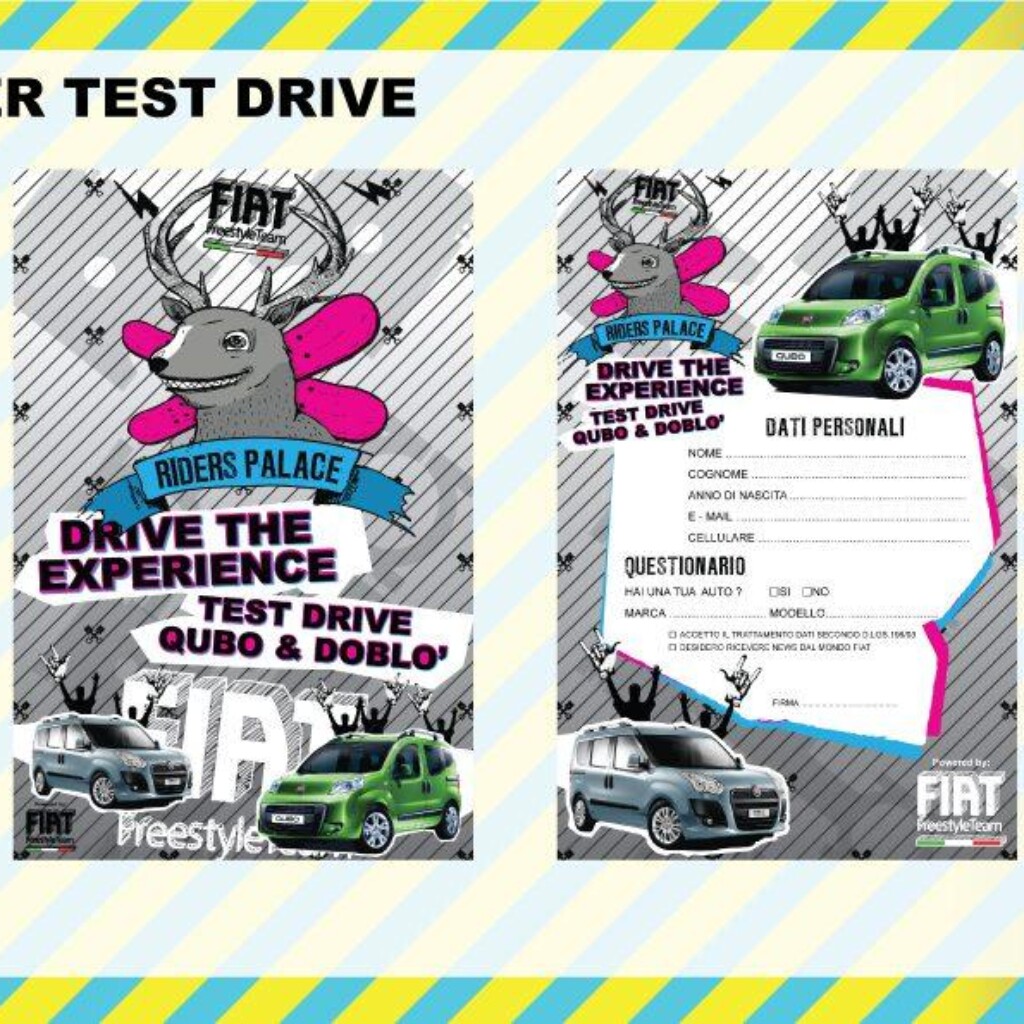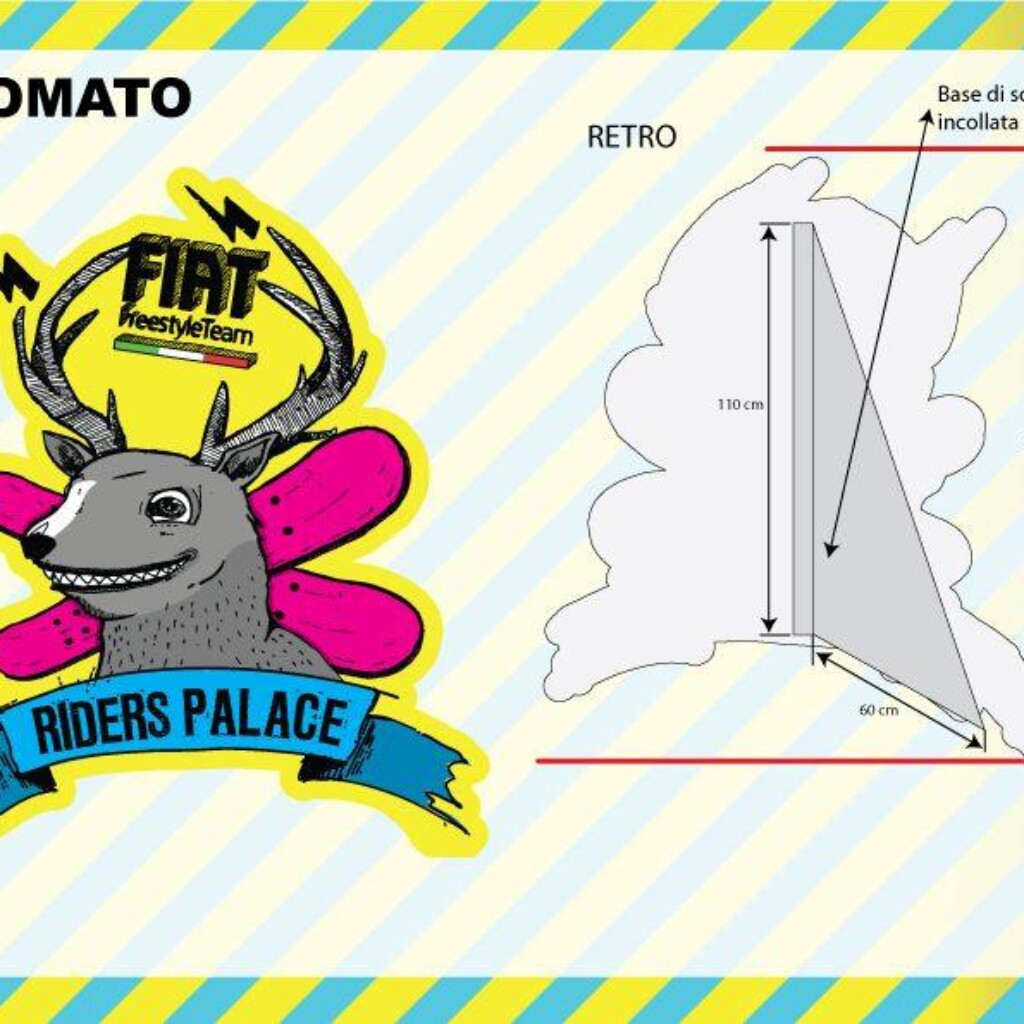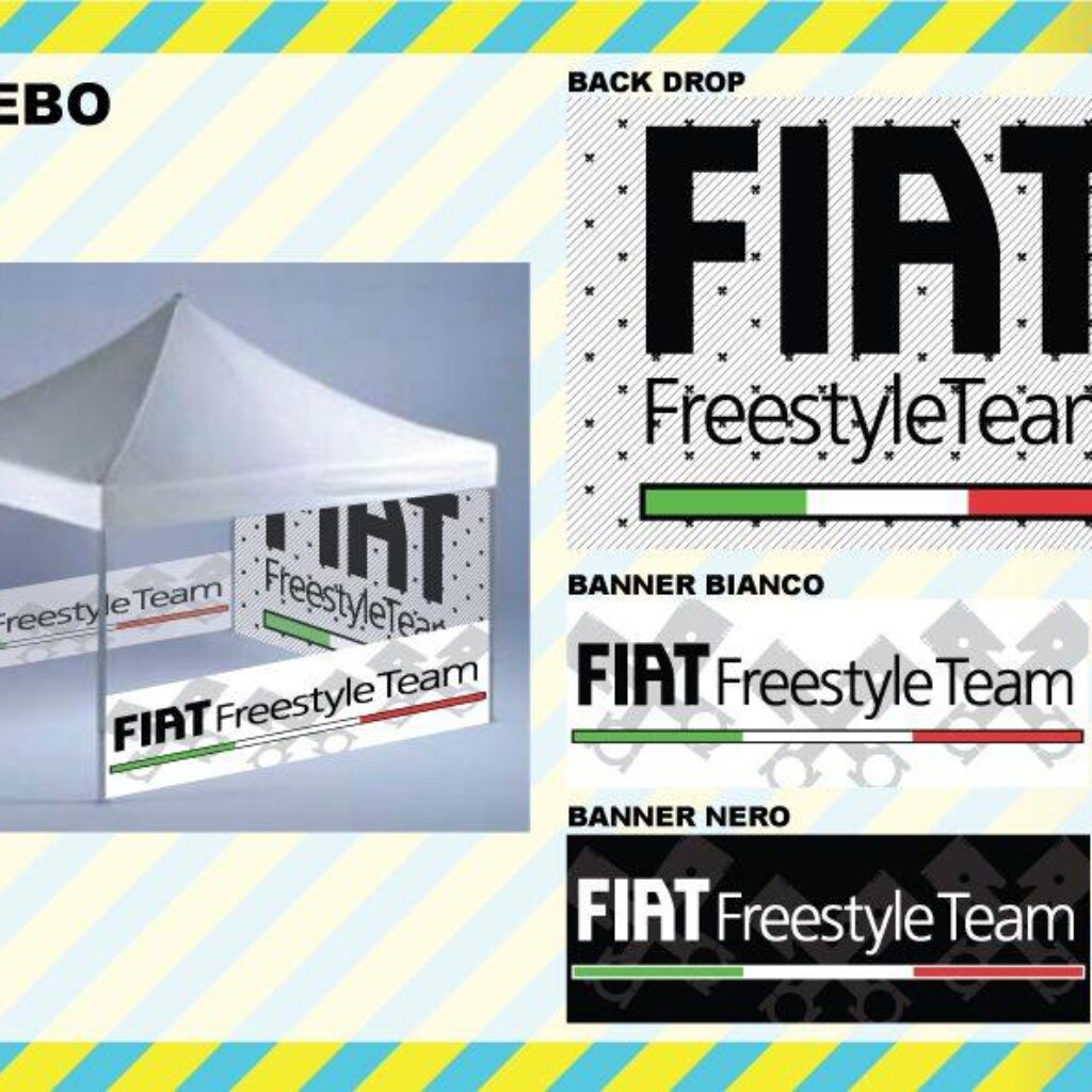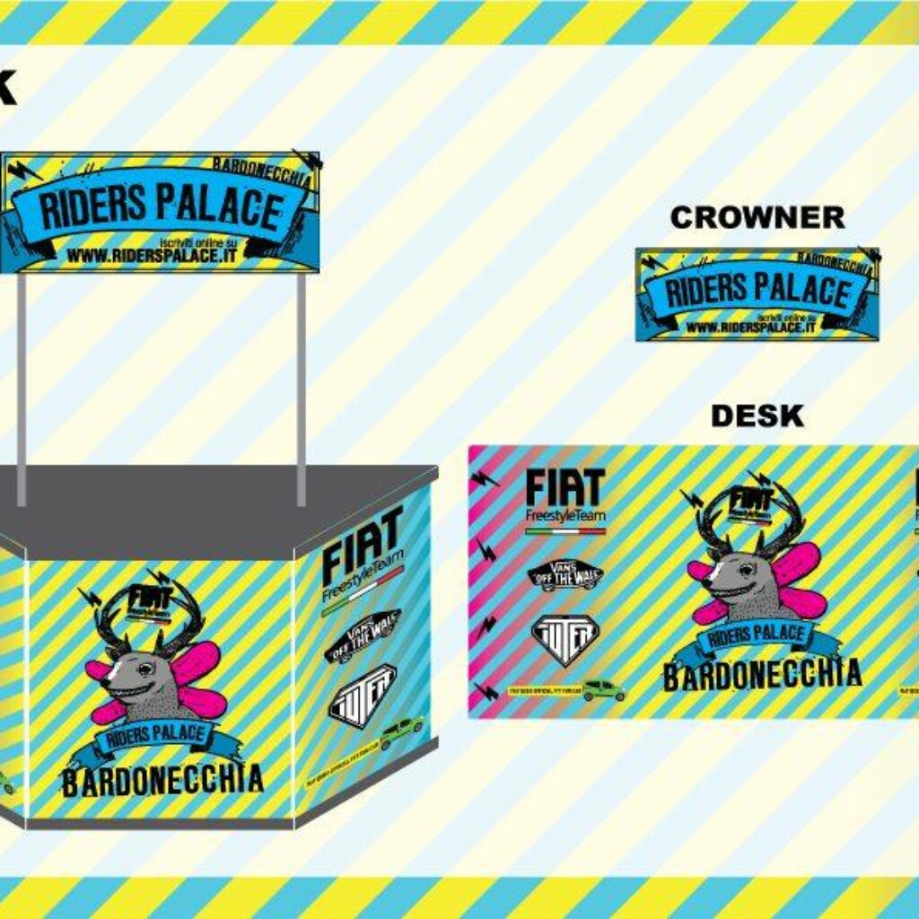 Info Progetto: Data: 29-01-2011 Cliente: CentoEventi s.r.l. Brand: Fiat Freestile Team – Iuter – Vans – Asahi – Riders Palace Skills: Brand & Event Manager Reality Sub-Skills: Ideazione, Studio e Progettazione, Realizzazione, Gestione ed Ottimizzazione Budget, Logistica e Installazione. Tools: SketchUp, Illustrator, Excel for Business Plan, Etc. Tempi di Realiz.: 90 giorni lavorativi