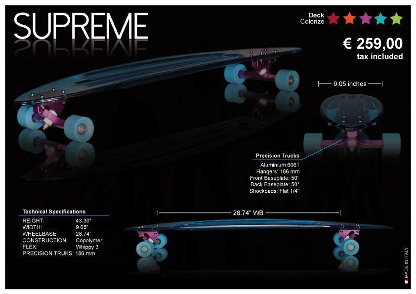 - Innovazione: Brevetto mondiale per longboard metacrilato.