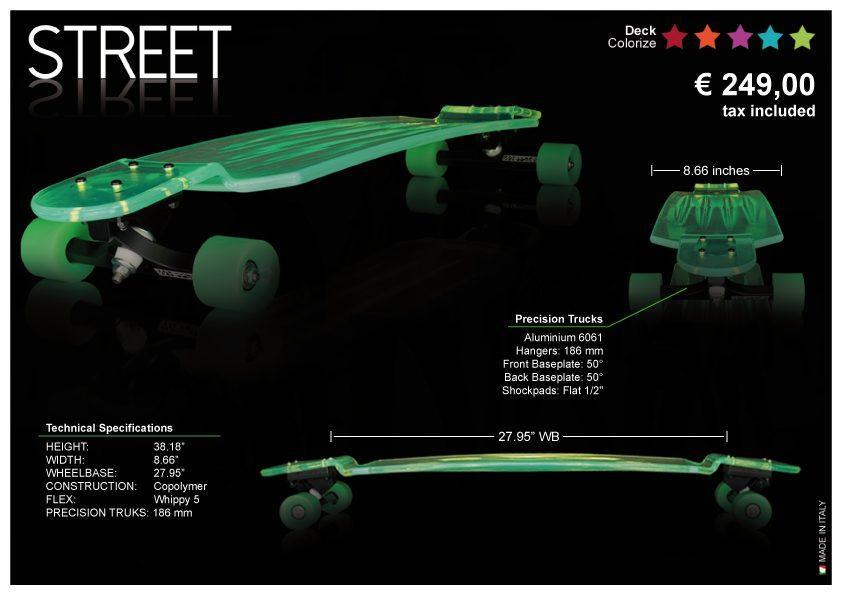 - Produzione: Risolta tecnicità, e brevettato longboard in metacrilato.
